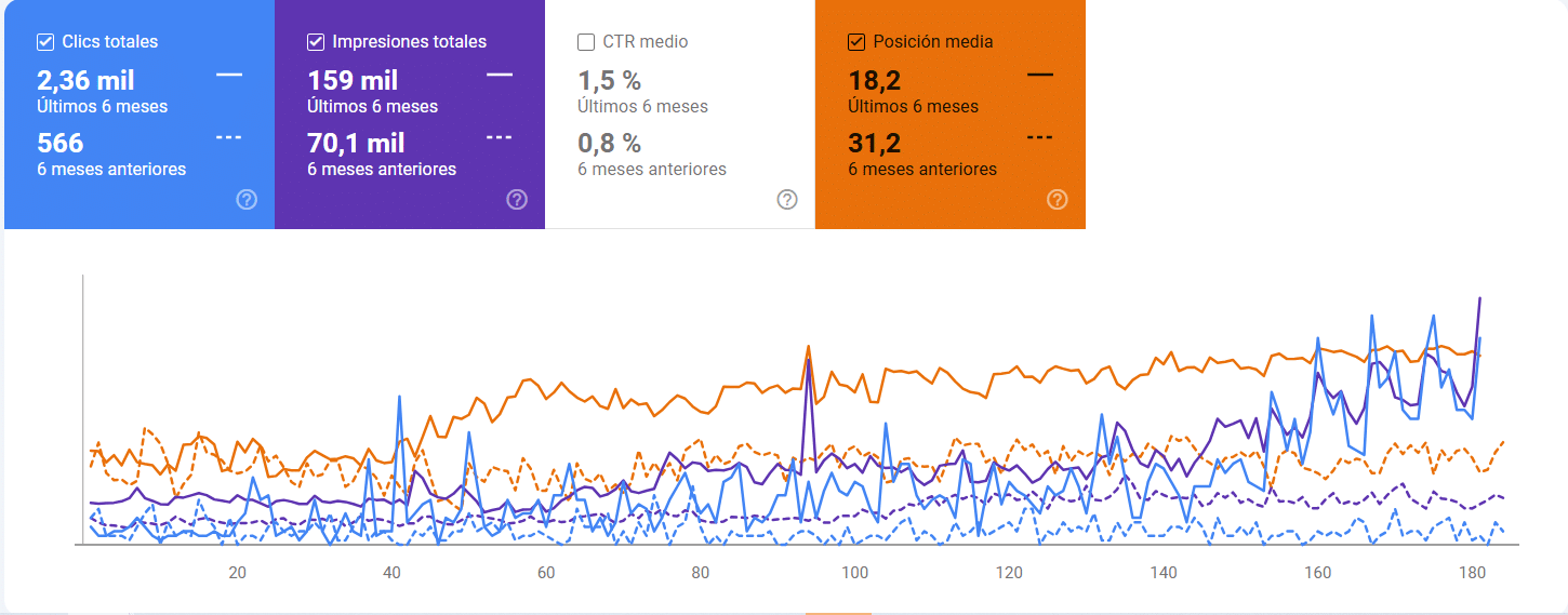En Posicionaze monitorizamos casi todas las acciones en tiempo real con herramientas oficiales de Google y te damos acceso a un panel unificado con métricas clave: visitas, clics, llamadas, tráfico y crecimiento. Además, recibís informes claros sobre la evolución de tus posiciones en Google.